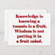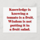 Knowledge is knowing a tomato is a fruit. Wisdom is not putting it in a fruit salad.