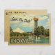 Vintage Knoxville Save The Date postcards featuring a charming park scene. This cool mid-century retro design is the perfect way to gather guests to your Knoxville Tennessee destination wedding.