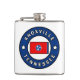 The flask itself is fine. It’s a cheap flask, obviously bought in bulk, however am prepared to overlook that. Given that it is a personalized item, I would have liked to have seen gift boxing instead of the generic packaging. Terrible printing, and/or quality. It’s a cheap, tacky vinyl. It is not cut straight and is also applied in a way that it is overhanging the bottom, causing the glue to catch on items and it will eventually roll and tear, damaging the wrap.