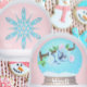 An adorable, cute blue and pink koala bear hangs from a tree branch in this snow globe. Done in colours of pink, blue, white and green. Perfect for a little girl. Personalisation on the front and back is optional.