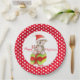Modern bright Christmas painted Koala bear festive paper plates with red and white polka dot border. Original watercolor art and design by Sarah Trett.