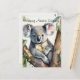 A Koala sitting in a gum tree holding an Easter egg. Happy Aussie Easter greeting