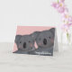 The card shows a koala couple on a pink couple. On the outside it reads, "congratulations" and on the inside it says, "You're engaged!". The inside message can be customised with the personalise feature.