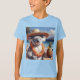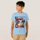 100% cotton so perfect for summer, It is a nicely designed t-shirt, the fabric is soft and the seams finished well, the body of the t shirt has no side seams. I bought a medium size for my two grandsons, aged 9 and 8 it will be slightly big on them but I would rather that than too small