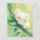This heartwarming design features an adorable, ultra-fluffy white koala shown resting joyfully in a sun-drenched eucalyptus forest. The koala has a soft, cloud-like texture with a blissfully happy face, closed eyes, and bright pink rosy cheeks that radiate pure contentment. It is captured in a peaceful moment, hugging a dark tree branch that is covered in vibrant green leaves. Beams of bright golden sunlight filter down through the canopy, illuminating the scene with a magical, soft-focus glow and creating a cheerful, serene atmosphere. The overall aesthetic is bright, cozy, and full of sweetness, making it an irresistible choice for fans of Australian wildlife and playful animal art. This cheerful koala postcard is a wonderful choice for sending a warm "thinking of you" note or a sun-drenched greeting to a friend who needs a reason to smile. You might choose to use this artistic card for a jungle-themed birthday invitation or as a sweet way to share news of a summer camping trip with your family. It also makes a precious decorative piece for a child's nursery wall or a bright addition to a creative scrapbooking project as a small token of happiness. This versatile design is also an excellent choice for a housewarming message, a graduation thank you note, or as a heartwarming way to share a message of joy for any situation or event.