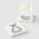 The coasters are gorgeous, a quality feel and heavy weight. They look like a precious archeological find. A rustic stone juxtaposed with a modern floral black and white print. I like the way the print goes slightly imperfect on the cut stone edges giving them a kind-of natural beauty.