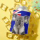 This furry koala is a native of Australia. The Australian flag is in the background. They are easily recognisable by their stout, tailless body and large head with round, fluffy ears and large, spoon-shaped nose.