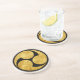 Serve your drinks on this nice Sandstone Drink Coaster with this famous Japanese Kobayakawa Mon in faux gold (BE AWARE! This is a photo image). The background is black.