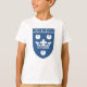 100% cotton so perfect for summer, It is a nicely designed t-shirt, the fabric is soft and the seams finished well, the body of the t shirt has no side seams. I bought a medium size for my two grandsons, aged 9 and 8 it will be slightly big on them but I would rather that than too small