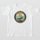 100% cotton so perfect for summer, It is a nicely designed t-shirt, the fabric is soft and the seams finished well, the body of the t shirt has no side seams. I bought a medium size for my two grandsons, aged 9 and 8 it will be slightly big on them but I would rather that than too small