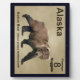 Another in the series of postage stamps for a hypothetical independent nation of Alaska. Features a digital painting of a Kodiak Bear on a neutral parchment, or old paper, background. Text reading "Alaska," "Postage 8 Nuggets," and Kodiak Bear Ursus arctos middendorffi" also appear. The Kodiak Bear (Ursus arctos middendorffi), a subspecies of the brown, or grizzly, bear are the world's largest bears. A full grown male can be over ten feet tall when upright on his hind legs and weigh over 1500 pounds - truly a sight to behold. One bear in the Bismarck, North Dakota zoo was estimated to have weighed as much as 2400 pounds. The bears live on the islands of Alaska's Kodiak Archipelago. Today there are approximately 3500 Kodiak bears and their numbers are increasing due to the generally excellent condition of their habitat including sufficient fist to eat. They are called "takuka-aq" in Alutiiq, the language of the people's native to that area. The bears are believed to have been isolated there since towards the end of the last Ice Age over 12,000 years ago. Though they are the largest terrestrial carnivore their diet includes large amounts of grass, other plants and berries. Today there are approximately 3500 Kodiak bears and their numbers are increasing due to the generally excellent condition of their habitat including sufficient fish to eat. Due to the abundance of food resources Kodiak bears have smaller home ranges than any other brown bears and have no need to defend territories. The Alutiiq people hunted bears for food, clothing and tools. Arrows, spears, and a great deal of courage were required hunting equipment. Bear heads were usually left in the field as a sign of respect to the spirit of the bears.