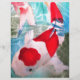 With a design from an original watercolour painting artwork by Australian artist Sacha Grossel of two Kohaku red and white Koi ornamental Japanese fish swimming in a cool, aquamarine pond with water effects. This colourful and vibrant artwork is inspired by Japanese and Asian art and is for fish or Koi lovers everywhere.