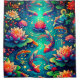 Immerse yourself in the serene beauty of this stunning artwork featuring koi fish swimming among lotus flowers and lily pads. The vibrant colours and intricate details of the fish scales and flower petals create a visually captivating scene. The water-like background enhances the tranquil and harmonious atmosphere, making this design perfect for adding a touch of aquatic elegance to any space.