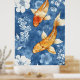 koi fish and the deep indigo blue of the floral poster