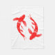A red vector illustration of two red koi fish. The fish are facing each other end to end as the swim. Inspired by tradtional Japanese art.