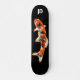 Japanese carp Koi fish illustration digital artwork. Symbol of abundance, perseverance, and good luck. Aquatic animal in vibrant orange, black and white. Gothic feel on a black background. Personalise by adding initials to make a more customised skateboard.