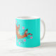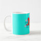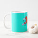 Turquoise mug embellished with oriental style orange koi fish surrounded by tiny pink flowers.
