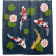 Beautiful minimalistic vector illustration of colourful Japanese koi fish swimming among the water lilies in a pond. Koi is a brightly coloured ornamental variety carp domesticated in Japan.