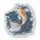 A vibrant koi fish with orange and white scales swims gracefully amidst swirling dark blue water. The dynamic movement of the water creates an energetic backdrop that highlights the elegance of the fish.
