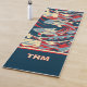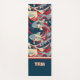 This Japanese inspired yoga mat design includes koi fish in waves of red, navy, and light blue, colored with "election poster" colors. The koi are caught up in a slightly psychedelic wave pattern that repeats at the top and bottom of the printed area. The waves are inspired by the famous Great Wave off Kanagawa artwork by Hokusai with swirling water and seafoam. Your monogram initials are printed at the bottom in a colorblock of navy with cream letters trimmed with red.