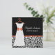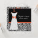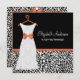 Make a fashion statement with these trendy black and white leopard print bridal shower invitations with a modern wedding gown on a hanger decorated with a girly Koi Orange ribbon tied into a cute bow. This chic animal print invitation can be personalised by adding the name of the bride to be, her wedding colours, and party information to the customisable template text areas. This stylish invite is part of the 2013 Fall Fashion Colour Collection. Flat printed image, not actual ribbon.