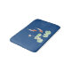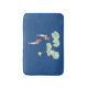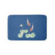 A bath mat featuring an idyllic Zen watercolor painting of two koi in a koi pond with white water lilies and water lily pads (blue background).