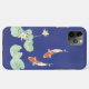 A blue iPhone 11 Pro Max case (tough) featuring an idyllic Zen watercolor painting of two koi in a pond with white water lilies and water lily pads. Also available for other device types!