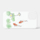 An iPhone 12 Mini Case featuring an idyllic Zen watercolor painting of two koi in a koi pond with white water lilies and water lily pads (white background).