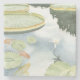 The coasters are gorgeous, a quality feel and heavy weight. They look like a precious archeological find. A rustic stone juxtaposed with a modern floral black and white print. I like the way the print goes slightly imperfect on the cut stone edges giving them a kind-of natural beauty.