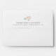 Pre-printed with your return address, these elegant envelopes are a perfect match for our Koi Pond wedding suite. Design features a small lotus flower or lilypad illustration on the back flap, with your return address beneath in charcoal grey. Lined with a subtle tone on tone koi fish and lotus flower pattern in pale coral orange.