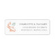 Zen chic return address labels feature elegant charcoal grey lettering with a pale orange koi fish and spring green aquatic leaf illustration. Designed to coordinate with our Koi Pond wedding collection.