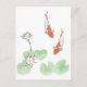 A Zen painting of two koi in a koi pond with white water lilies and water lily pads.