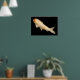 This simple, elegant poster features a delicately coloured orange and white koi fish swimming against a pure black background.