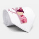 Kokeshi doll wearing a pink kimono with cherry blossom details standing in front of a tree.