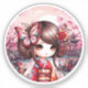 Kokeshi With Pink Landscape, Kokeshi Sticker