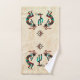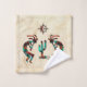 Brighten Your Bathroom with this Unique "One of a Kind" Southwest Kokopelli Bath Towel Set! It Features Two Southwest Kokopelli in Turquoise, Orange and Black Playing the Flute and Dancing Around a Cactus Under the Sun...on a Sandstone Background!