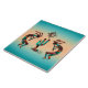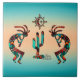 Brighten Your Home with this Unique "One of a Kind" Two Southwest Kokopelli Ceramic Tile! It Features a TwoSouthwest Kokopelli Playing the Flute and Dancing Around a Cactus Under the Sun on a Turquoise and Orange Sunset Background!