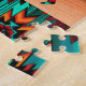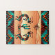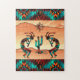 Enjoy this Unique Southwest Kokopelli Puzzle! It Features Two Southwest Kokopelli Playing the Flute and Dancing Around a Cactus in the Desert Under the Sun in the Desert....Surrounded by a Turquoise, Orange & Black Background!