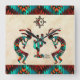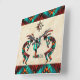 This is a Unique "One of a Kind" Southwest Kokopelli Wall Clock! It Features Two Southwest Kokopelli Playing the Flute and Dancing Around a Cactus Under the Sun...on a Sandstone Background with Turquoise, Orange and Black Borders!