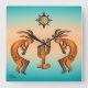 This is a Unique "One of a Kind" Southwest Kokopelli Wall Clock! It Features Two Copper Southwest Kokopelli Playing the Flute and Dancing Around a Cactus Under the Sun...on a Turquoise and Orange Sunset Background!