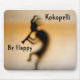 Kokopelli Be Happy inspirational mousepad. There are many legends about Kokopelli. He is usually portrayed as a free spirit and source of music making and dancing and spreading joy to those around him. Also said that his flute playing symbolised the transition of winter to spring. Often considered a fertility god and can bring good luck and abundance wherever he goes. Just a fun guy! Click on Customise to add text. Contact me with design questions and requests. This image is available on many products in my store. Thanks for stopping by Smilin' Eyes Treasures.