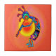 This native American inspired ceramic tile has Kokopelli with a lizard and sun in bright and colourful colours.