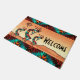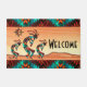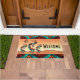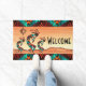 Personalise this Unique "One of a Kind" Southwest Kokopelli Doormat! It Features a Three Kokopelli Playing the Flute and Dancing Under the Sun on a Desert Background...Surrounded by a Southwest Border in Turquoise, Orange and Black!