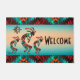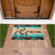 Personalise this Unique "One of a Kind" Southwest Kokopelli Doormat! It Features a Three Kokopelli Playing the Flute and Dancing Under the Sun on a Turquoise and Orange Sunset Background...Surrounded by a Southwest Border in Turquoise, Orange and Black!