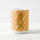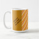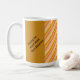This morning coffee or tea mug features a golden Kokopelli with flute which is one of the iconic images of the desert southwest in the United States. This distinctive Kokopelli stands out against a diagonal striped background of orange earth tones. "Making the World Sound More Beautiful" and your name appears on either side of the kokopelli in blocky, dark brown font. Easily personalise all text.