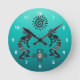 Kokopelli With Native Sun and Native Bird Symbol Round Clock