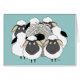 Greeting card showing an adorable, shaggy Komondor dog blending in with his flock of sheep. Caption on the greeting card reads, "Missing Ewe!". Background is displayed as a teal colour, but it and the font and phrase can easily be customised to whatever you'd like.