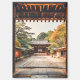 Capture the timeless elegance of Japanese heritage with this evocative digital photo art. Framed by the weathered wood of a traditional mon (gate), the viewer is invited down a sun-drenched stone path toward a magnificent temple sanctuary. Nestled among manicured pines and the soft hues of changing seasons, this piece perfectly embodies the "Wabi-sabi" aesthetic—finding beauty in the aged and the peaceful.