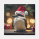 This image captures the festive spirit of the kookaburra in a Santa hat, adding a touch of holiday joy against a bokeh-lit background.
