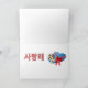 "사랑해" - "I love you" in Korean. Give this lovely card on Valentine's Day or whenever you wish to express your love. Hearts made of flower stems float above a background of red and gold ribbons.